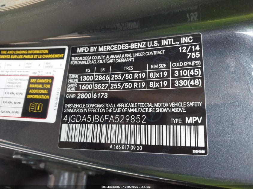 2015 MERCEDES-BENZ M-CLASS 2015 року Бензин, 3.5, , vin - 4JGDA5JB6FA529852 из США
