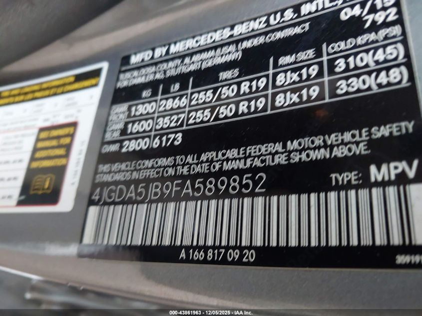 2015 MERCEDES-BENZ M-CLASS 2015 року Бензин, 3.5, , vin - 4JGDA5JB9FA589852 из США