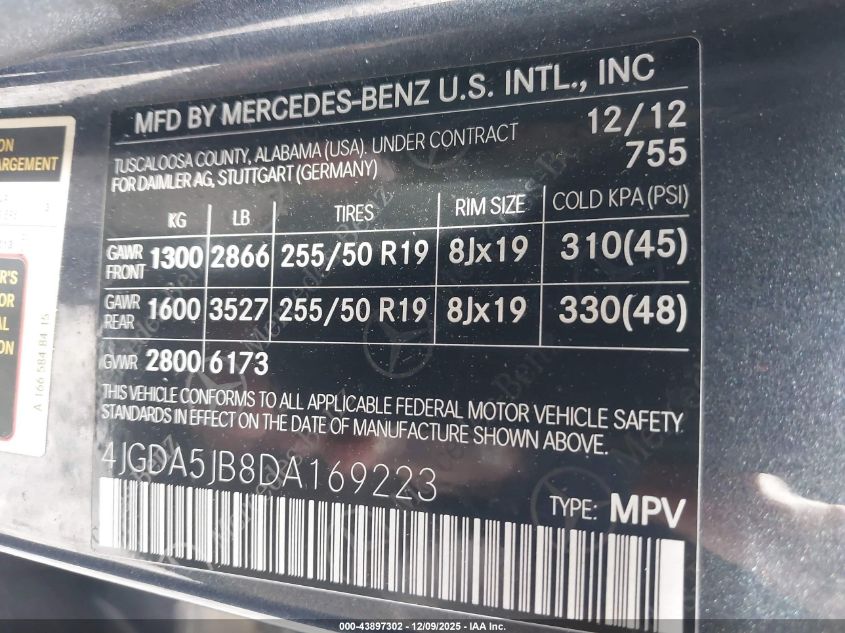 2013 MERCEDES-BENZ M-CLASS 2013 року Бензин, 3.5, , vin - 4JGDA5JB8DA169223 из США