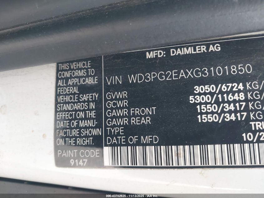 2016 MERCEDES-BENZ METRIS 2016 року Бензин, 2.0, Задний привод, vin - WD3PG2EAXG3101850 из США