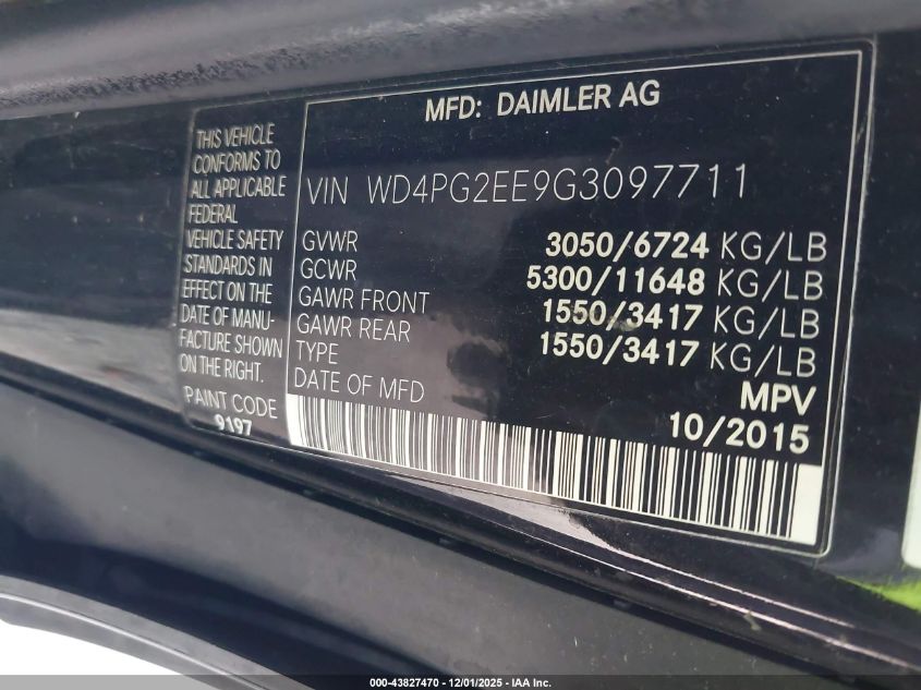 2016 MERCEDES-BENZ METRIS 2016 року Бензин, 2.0, Задний привод, vin - WD4PG2EE9G3097711 из США