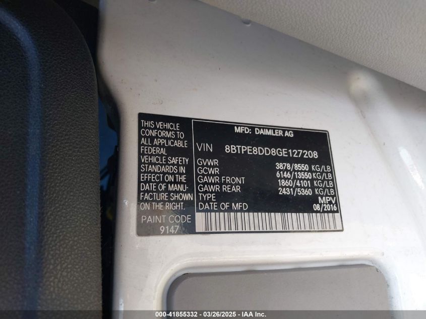 2016 MERCEDES-BENZ SPRINTER 2016 року Дизель, 2.1, Задний привод, vin - 8BTPE8DD8GE127208 из США