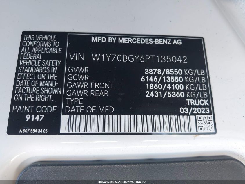 2023 MERCEDES-BENZ SPRINTER 2023 року Бензин, 2.0, Задний привод, vin - W1Y70BGY6PT135042 из США