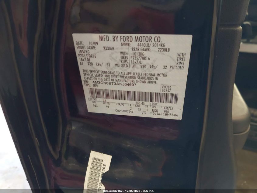 2010 MERCURY MARINER 2010 року Бензин, 2.5, Передний привод, vin - 4M2CN8B73AKJ04697 из США