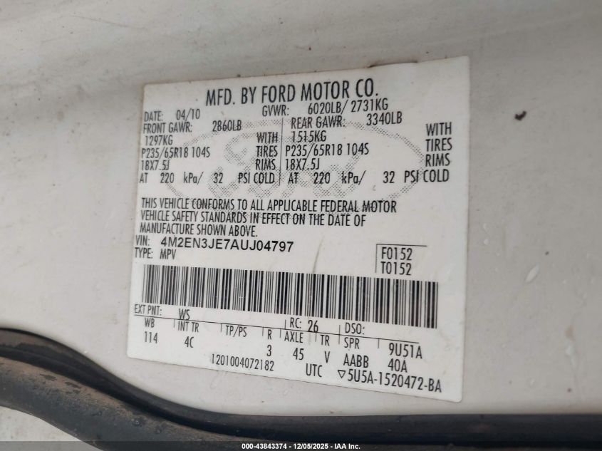 2010 MERCURY MOUNTAINEER 2010 року Бензин, 4.0, , vin - 4M2EN3JE7AUJ04797 из США