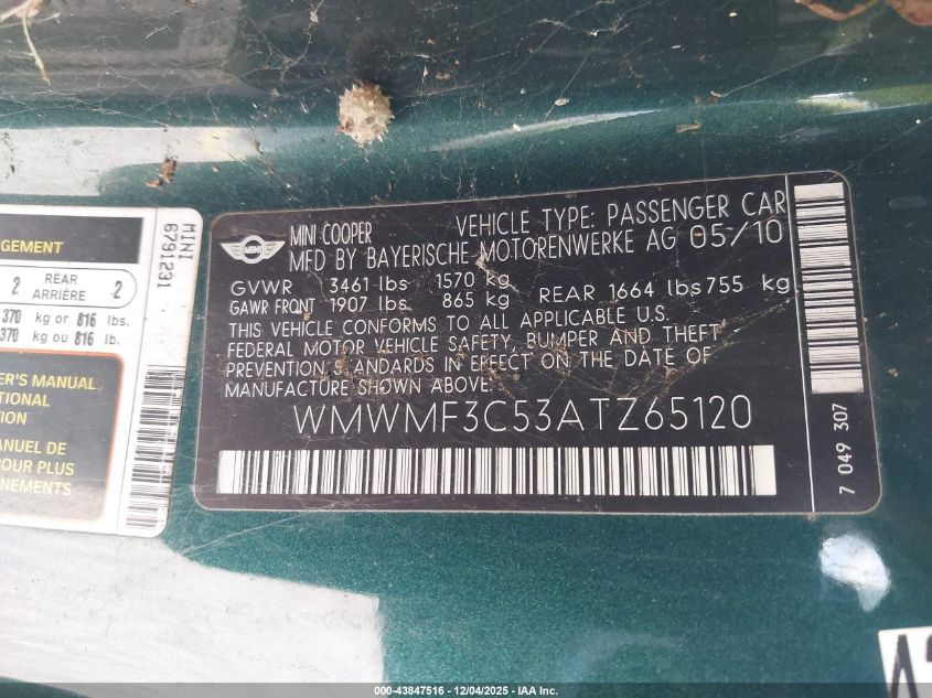 2010 MINI COOPER 2010 року Бензин, 1.6, Передний привод, vin - WMWMF3C53ATZ65120 из США