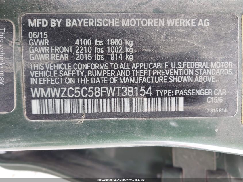 Цвет ЗеленыйЦилиндры 4Привод Полный приводVIN WMWZC5C58FWT38154Состояние Заводится и едет (проверено)Повреждения Правая сторона AutoRIA