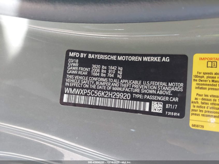 Цвет СерыйЦилиндры 3Привод Передний приводVIN WMWXP5C56K2H29920Состояние Заводится и едет (проверено)Повреждения Передняя или задняя