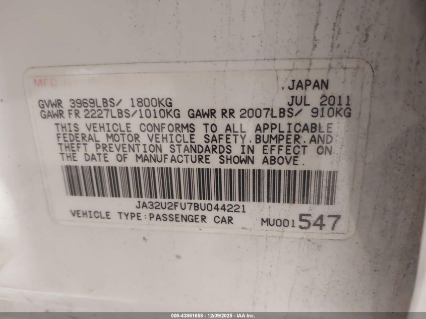 2011 MITSUBISHI LANCER 2011 року Бензин, 2.0, Передний привод, vin - JA32U2FU7BU044221 из США
