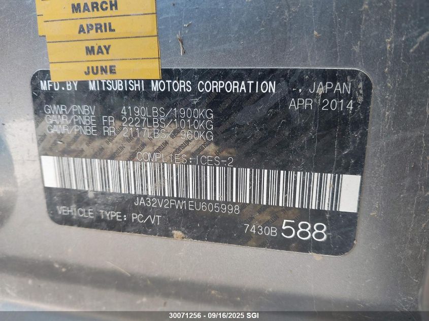2014 MITSUBISHI LANCER 2014 року Бензин, , Полный привод, vin - JA32V2FW1EU605998 из США