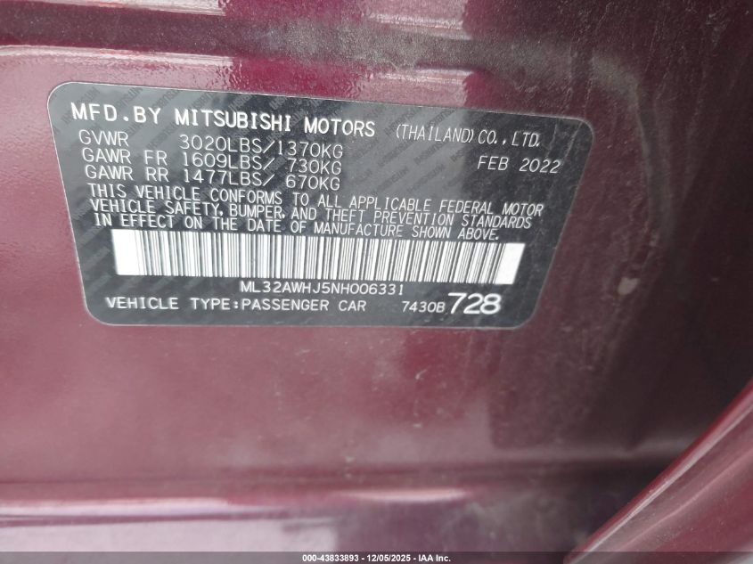 2022 MITSUBISHI MIRAGE ES