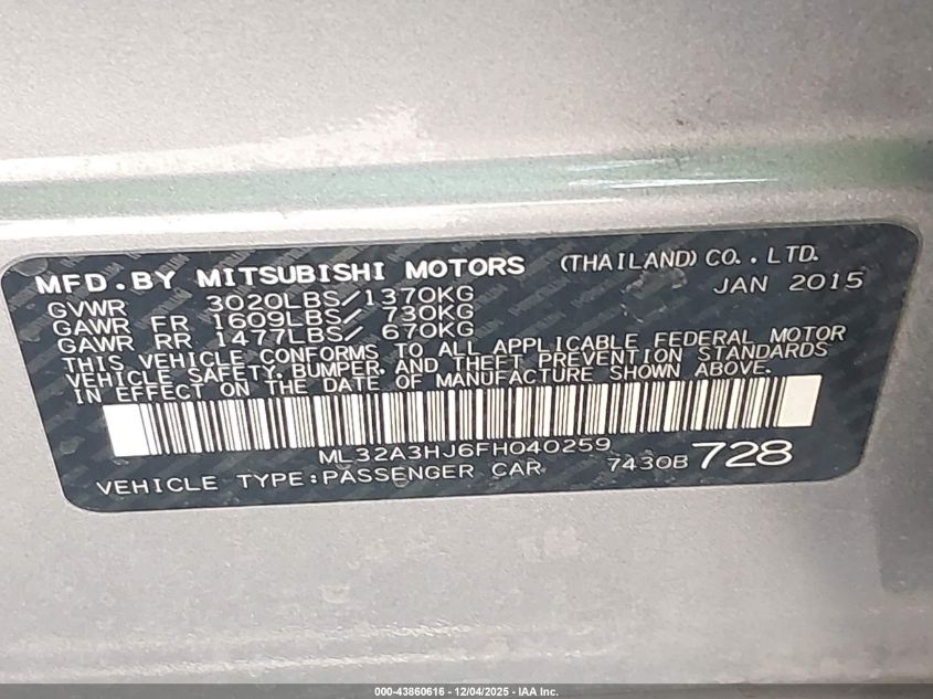2015 MITSUBISHI MIRAGE 2015 року Бензин, 1.2, Передний привод, vin - ML32A3HJ6FH040259 из США