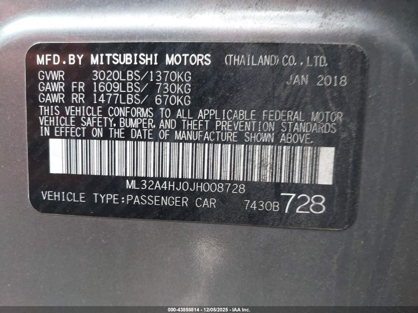 2018 MITSUBISHI MIRAGE 2018 року Бензин, 1.2, Передний привод, vin - ML32A4HJ0JH008728 из США