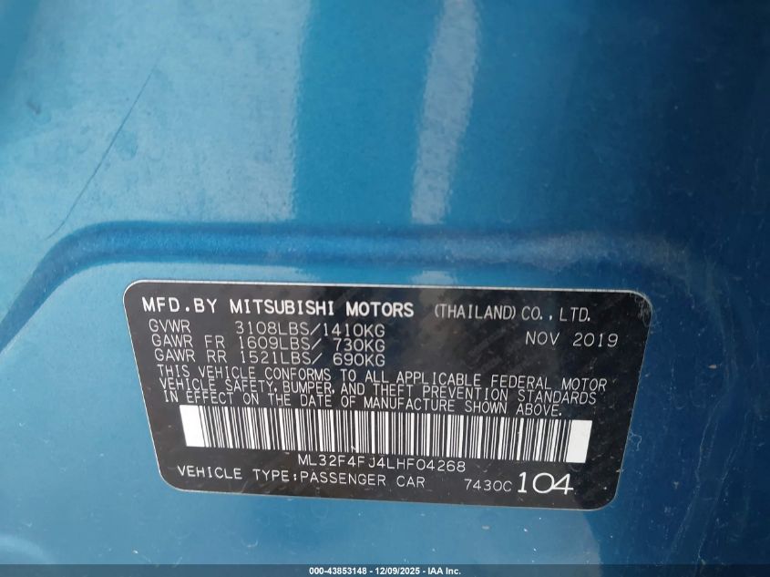 2020 MITSUBISHI MIRAGE 2020 року Бензин, 1.2, Передний привод, vin - ML32F4FJ4LHF04268 из США