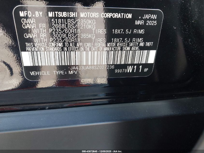 2025 MITSUBISHI OUTLANDER 2025 року Бензин, 2.5, Передний привод, vin - JA4J3UA88SZ027236 из США