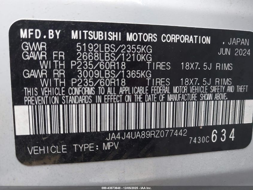 2024 MITSUBISHI OUTLANDER 2024 року Бензин, 2.5, Полный привод, vin - JA4J4UA89RZ077442 из США