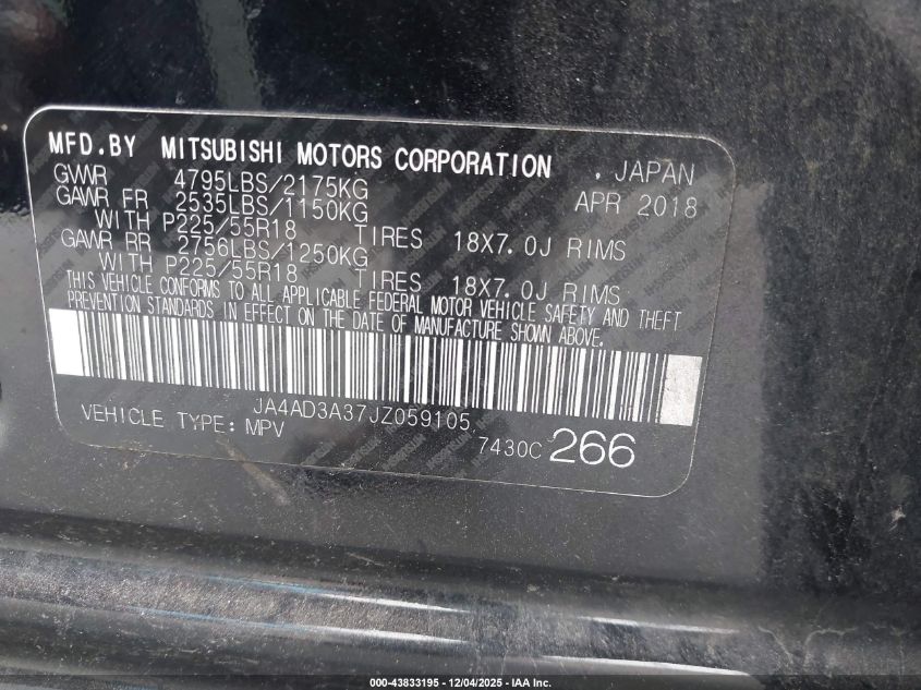 2018 MITSUBISHI OUTLANDER 2018 року Бензин, 2.4, Передний привод, vin - JA4AD3A37JZ059105 из США