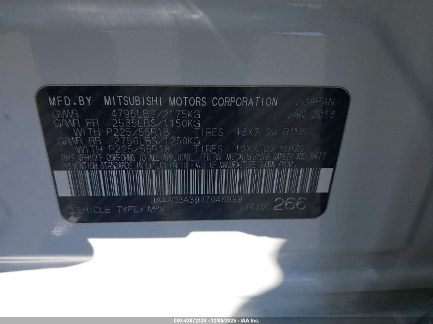 2018 MITSUBISHI OUTLANDER 2018 року Бензин, 2.4, Передний привод, vin - JA4AD3A39JZ046999 из США