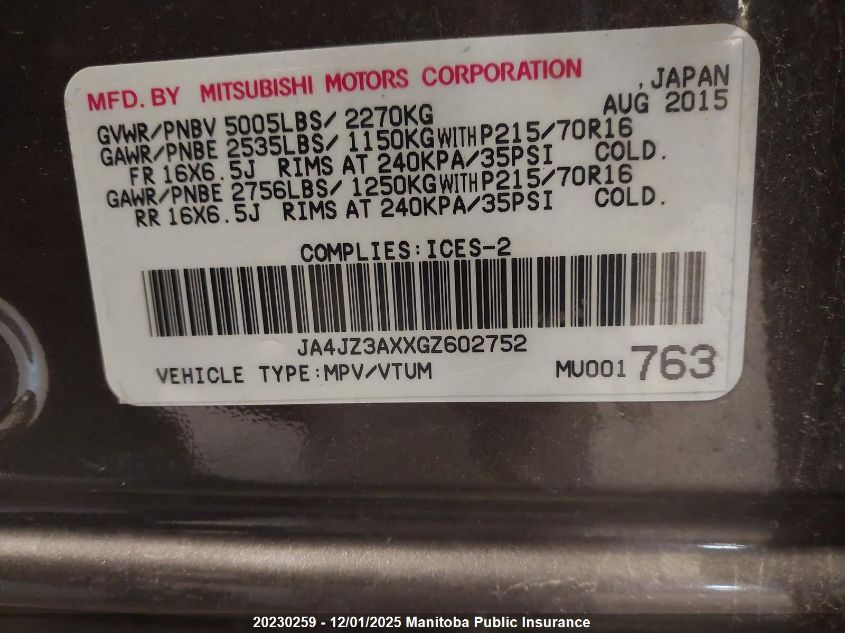 2016 MITSUBISHI OUTLANDER 2016 року Бензин, , Полный привод, vin - JA4JZ3AXXGZ602752 из США