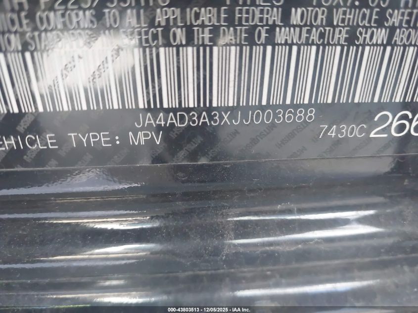 2018 MITSUBISHI OUTLANDER 2018 року Бензин, 2.4, Передний привод, vin - JA4AD3A3XJJ003688 из США