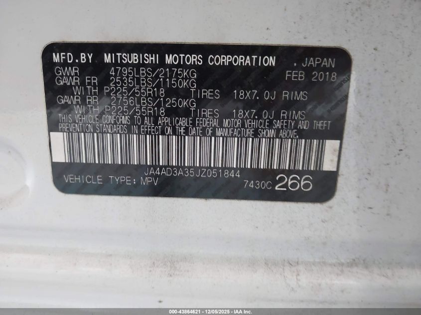 2018 MITSUBISHI OUTLANDER 2018 року Бензин, 2.4, Передний привод, vin - JA4AD3A35JZ051844 из США