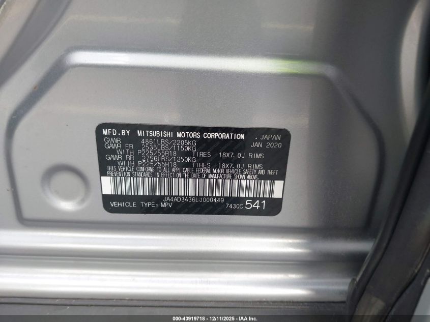 2020 MITSUBISHI OUTLANDER 2020 року Бензин, 2.4, Передний привод, vin - JA4AD3A36LJ000449 из США