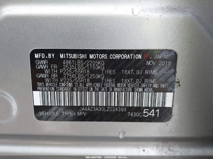 2020 MITSUBISHI OUTLANDER 2020 року Бензин, 2.4, Полный привод, vin - JA4AZ3A30LZ024393 из США