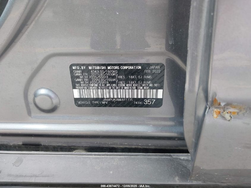 2022 MITSUBISHI OUTLANDER SPORT 2022 року Бензин, 2.0, Передний привод, vin - JA4APUAU8NU011735 из США