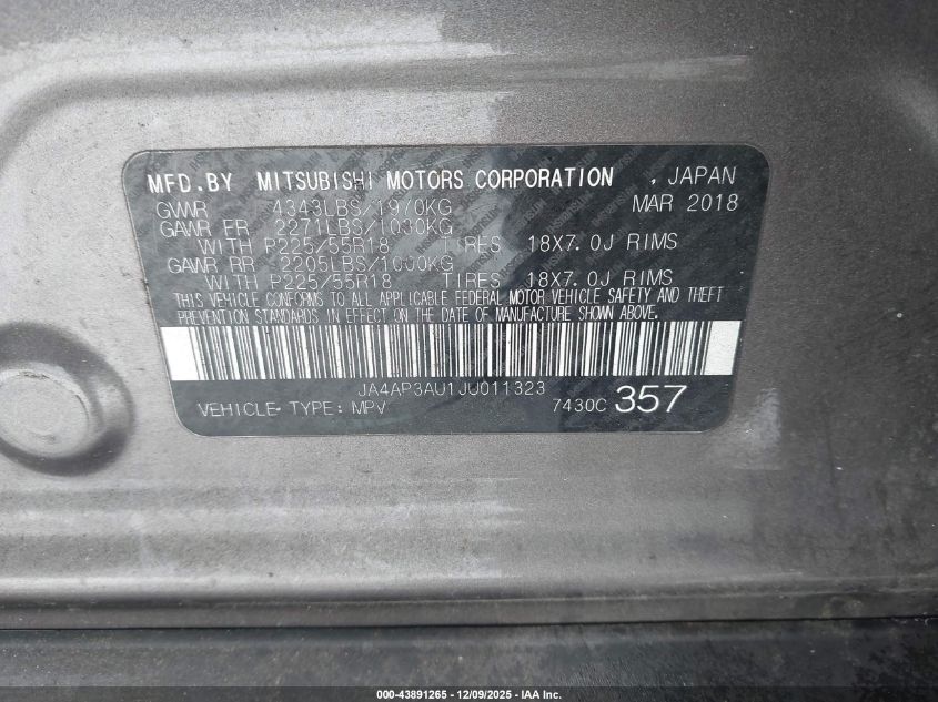2018 MITSUBISHI OUTLANDER SPORT 2018 року Бензин, 2.0, Передний привод, vin - JA4AP3AU1JU011323 из США