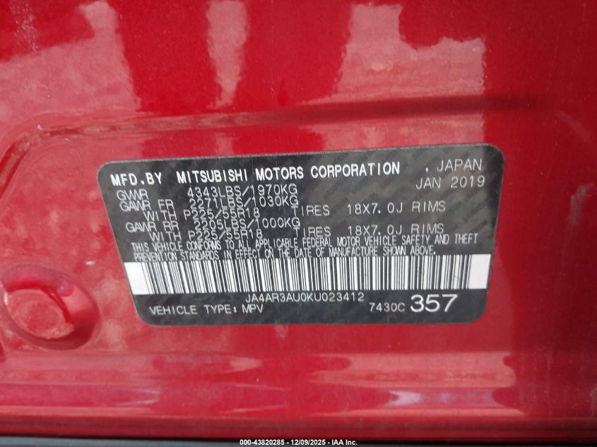 2019 MITSUBISHI OUTLANDER SPORT 2019 року Бензин, 2.0, Полный привод, vin - JA4AR3AU0KU023412 из США