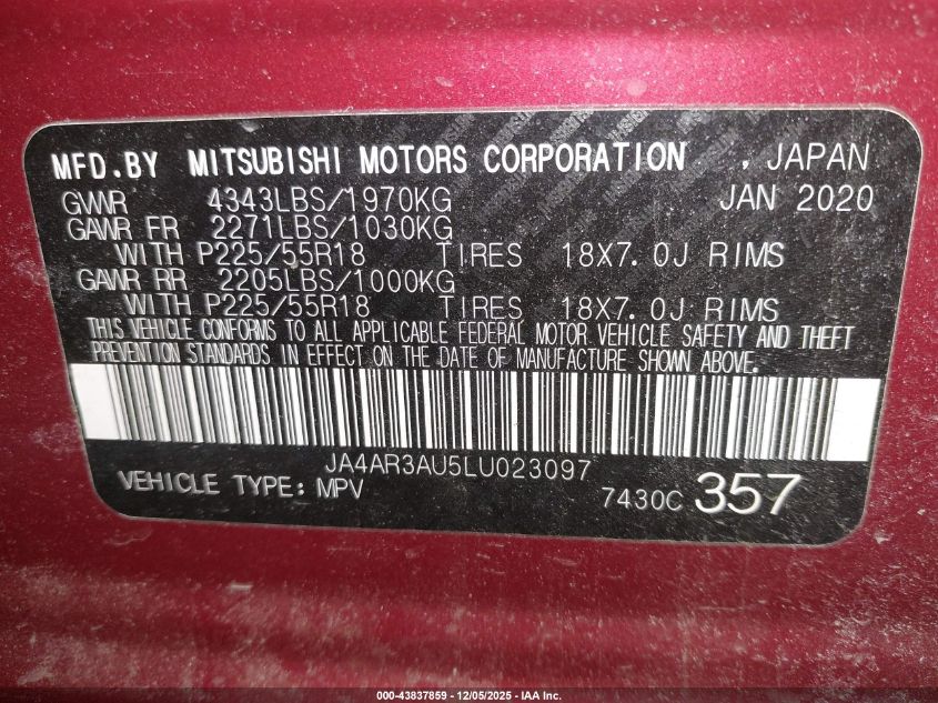 2020 MITSUBISHI OUTLANDER SPORT 2020 року Бензин, 2.0, Полный привод, vin - JA4AR3AU5LU023097 из США