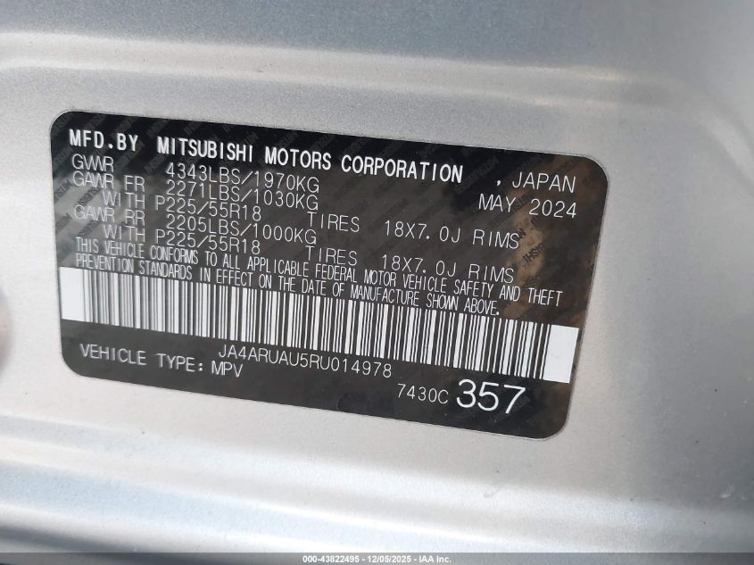 2024 MITSUBISHI OUTLANDER SPORT 2024 року Бензин, 2.0, Полный привод, vin - JA4ARUAU5RU014978 из США