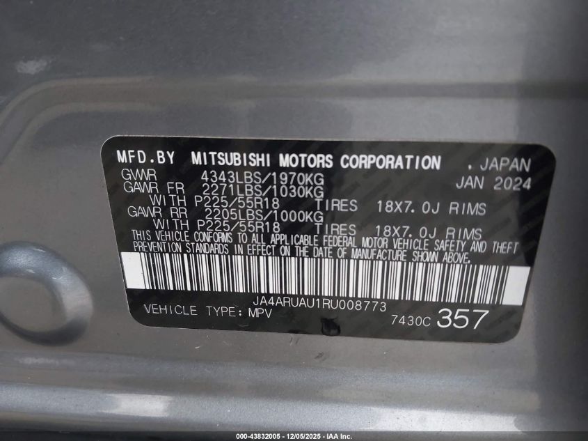 2024 MITSUBISHI OUTLANDER SPORT 2024 року Бензин, 2.0, Полный привод, vin - JA4ARUAU1RU008773 из США