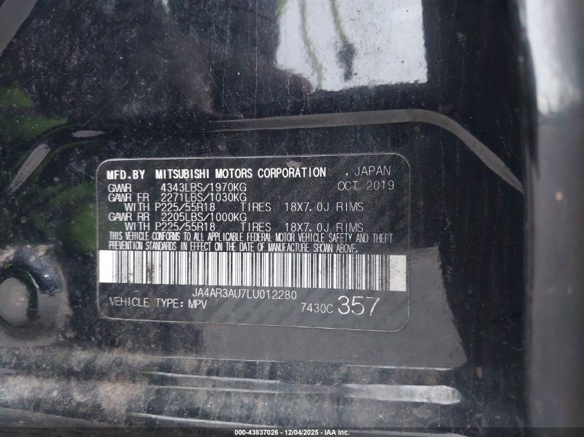 2020 MITSUBISHI OUTLANDER SPORT 2020 року Бензин, 2.0, Полный привод, vin - JA4AR3AU7LU012280 из США