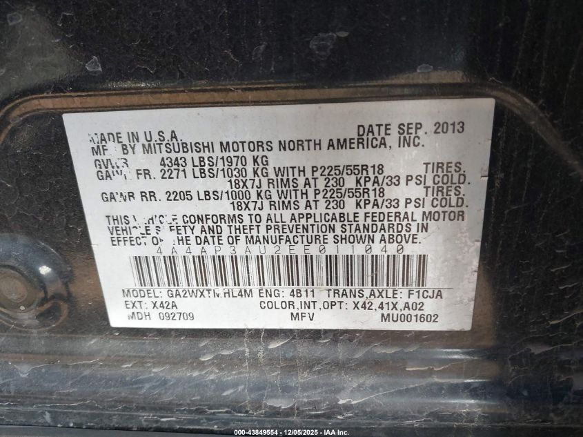 Цвет ЧерныйЦилиндры 4Привод Передний приводVIN 4A4AP3AU2EE011040Состояние СтационарноПовреждения Передняя или задняя AutoRIA
