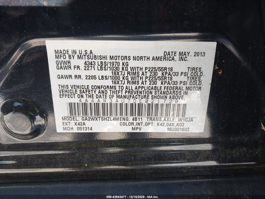 2013 MITSUBISHI OUTLANDER SPORT 2013 року Бензин, 2.0, Полный привод, vin - 4A4AR3AU7DE021720 из США