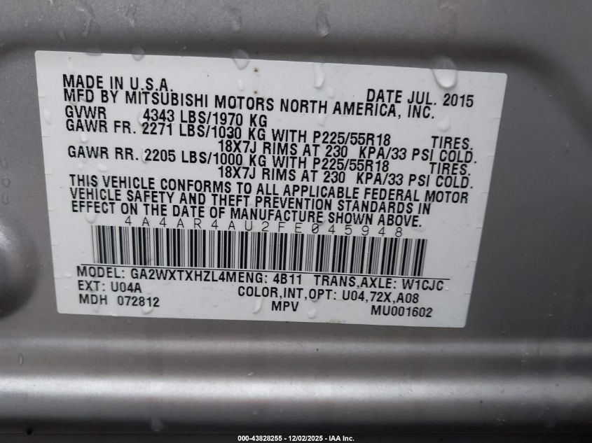 2015 MITSUBISHI OUTLANDER SPORT 2015 року Бензин, 2.0, Полный привод, vin - 4A4AR4AU2FE045948 из США