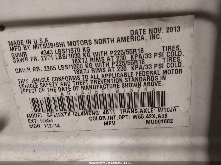 2014 MITSUBISHI OUTLANDER SPORT 2014 року Бензин, 2.0, Полный привод, vin - 4A4AR4AU6EE016743 из США