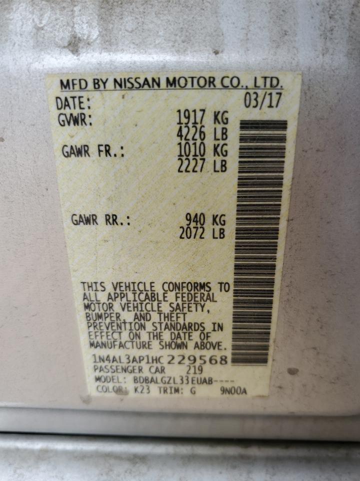 2017 NISSAN ALTIMA 2017 року Бензин, 2.5, , vin - 1N4AL3AP1HC229568 из США