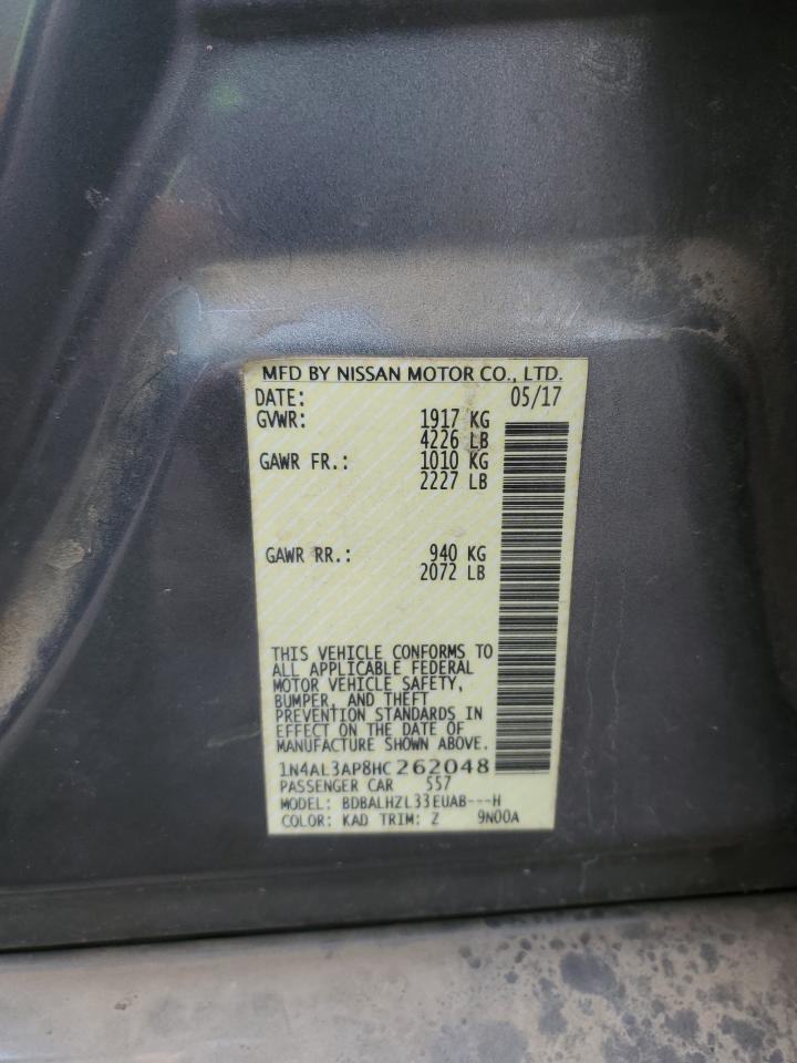 Цвет СерыйЦилиндры 4VIN 1N4AL3AP8HC262048Состояние Заводится и едет (проверено)Повреждения Передняя или задняя AutoRIA
