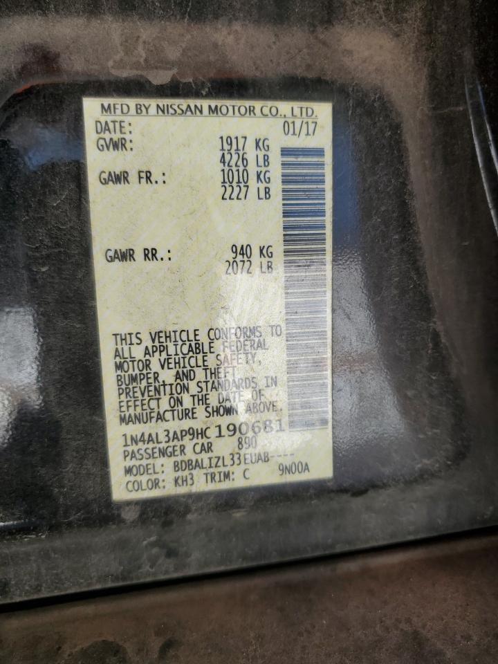 2017 NISSAN ALTIMA 2017 року Бензин, 2.5, , vin - 1N4AL3AP9HC190681 из США