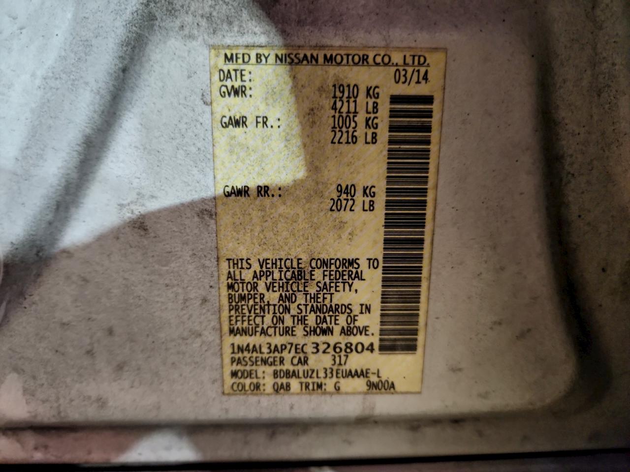 Цвет БелыйЦилиндры 4VIN 1N4AL3AP7EC326804Состояние Заводится и едет (проверено)Повреждения Передняя или задняя AutoRIA