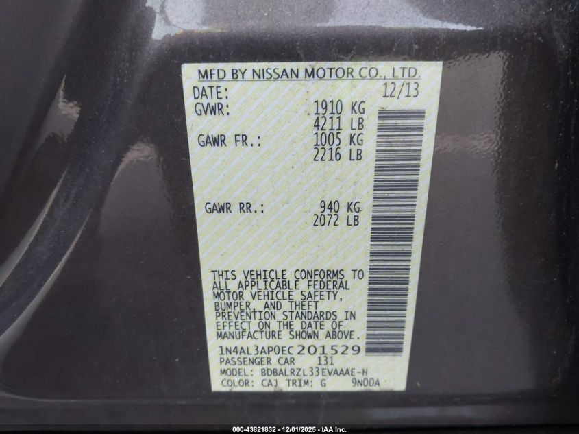 2014 NISSAN ALTIMA 2014 року Бензин, 2.5, Передний привод, vin - 1N4AL3AP0EC201529 из США