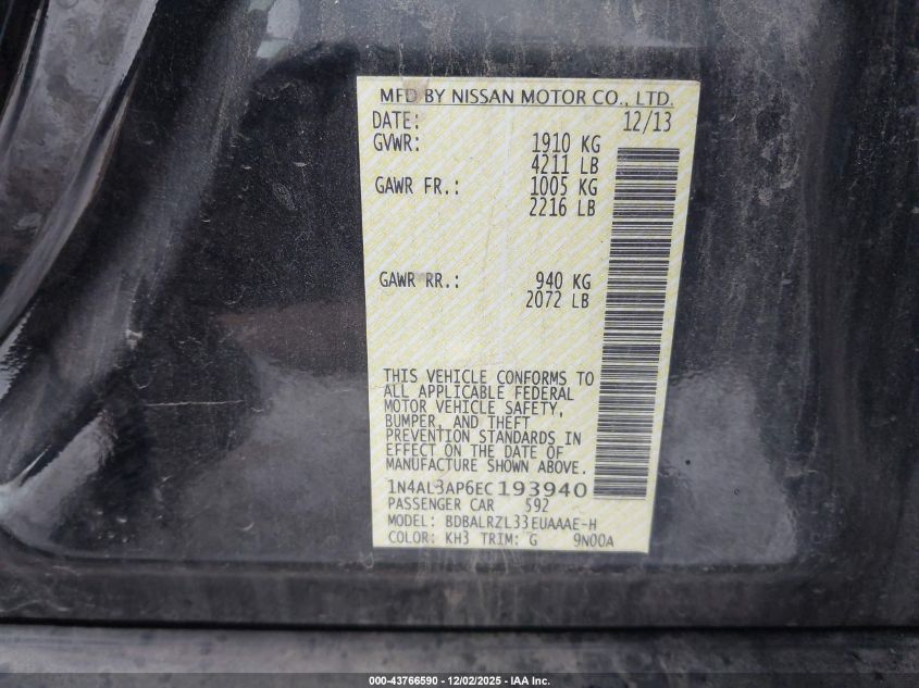 2014 NISSAN ALTIMA 2014 року Бензин, 2.5, Передний привод, vin - 1N4AL3AP6EC193940 из США