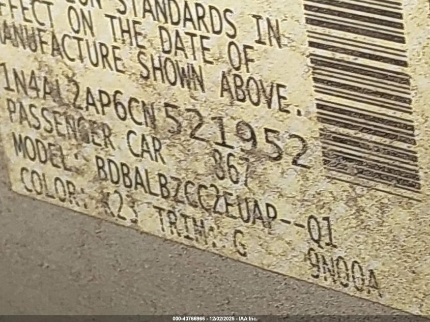 2012 NISSAN ALTIMA 2012 року Бензин, 2.5, Передний привод, vin - 1N4AL2AP6CN521952 из США
