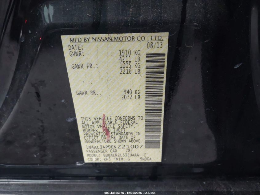 2014 NISSAN ALTIMA 2014 року Бензин, 2.5, Передний привод, vin - 1N4AL3AP9EN221007 из США