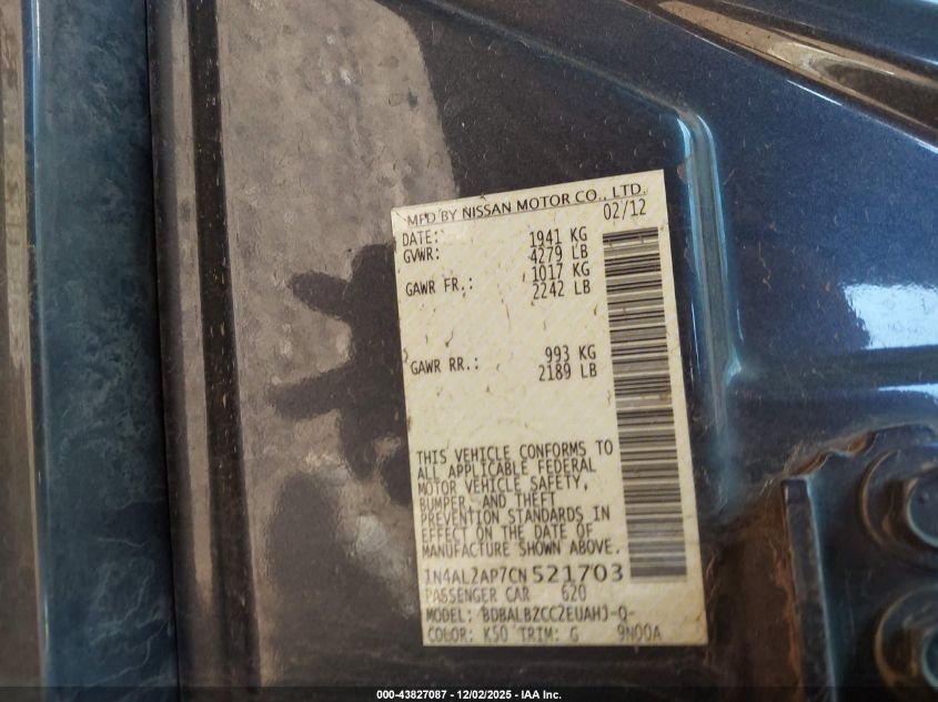 2012 NISSAN ALTIMA 2012 року Бензин, 2.5, Передний привод, vin - 1N4AL2AP7CN521703 из США