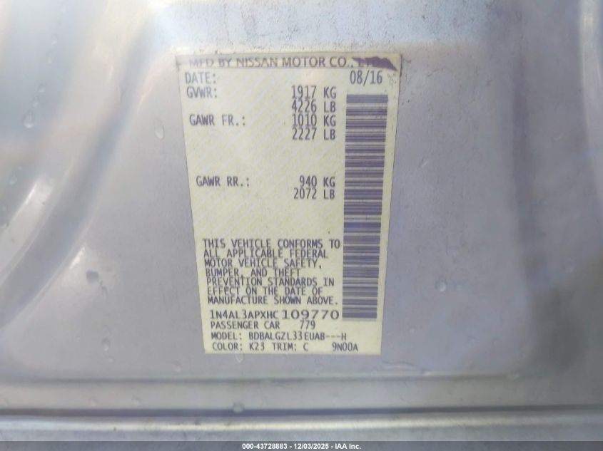 2017 NISSAN ALTIMA 2.5