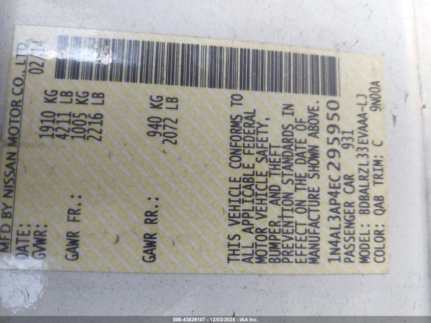 2014 NISSAN ALTIMA 2014 року Бензин, 2.5, Передний привод, vin - 1N4AL3AP4EC295950 из США