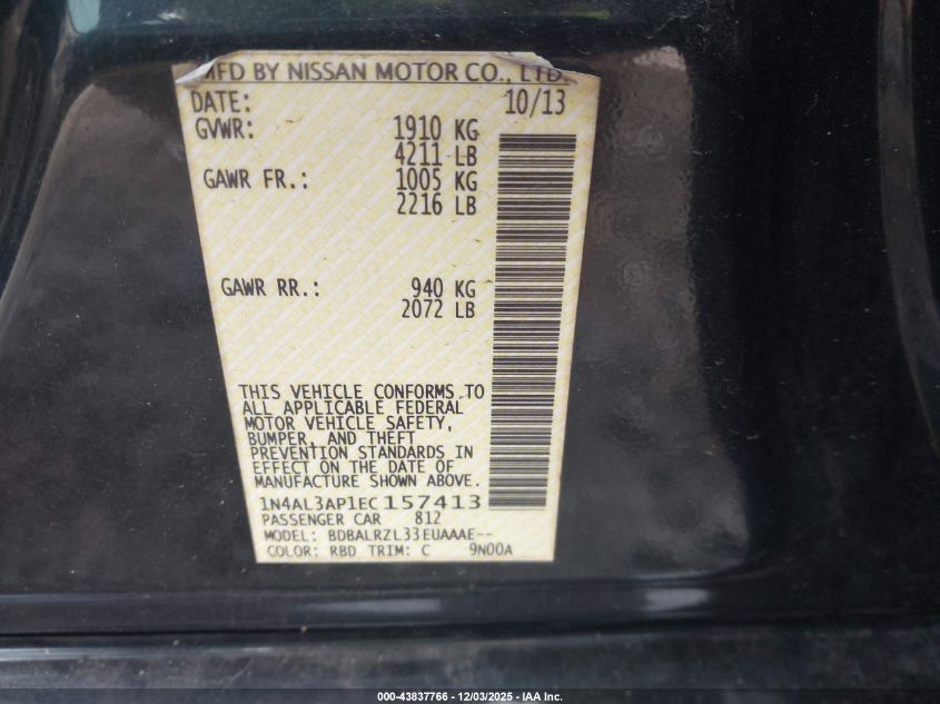 2014 NISSAN ALTIMA 2014 року Бензин, 2.5, Передний привод, vin - 1N4AL3AP1EC157413 из США